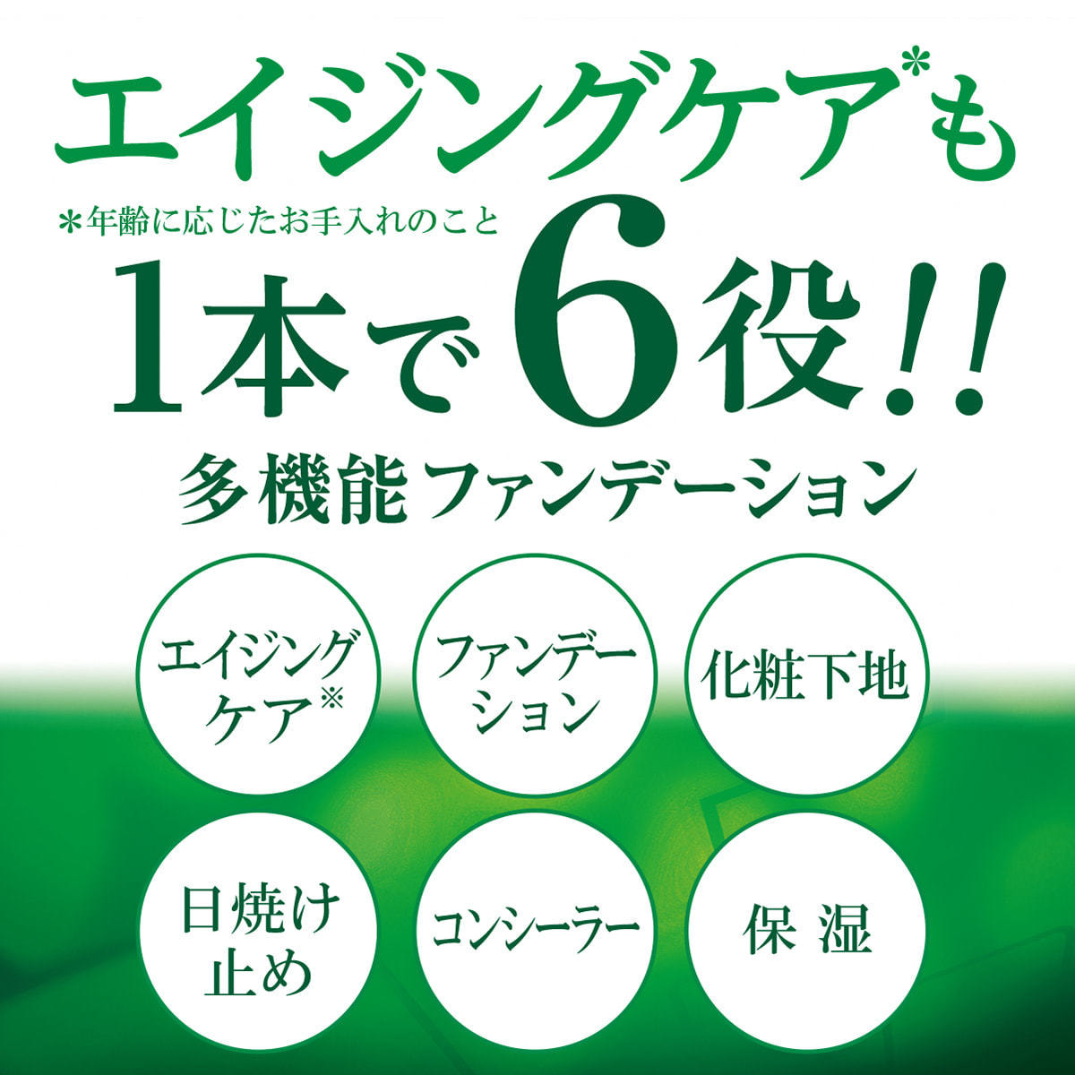 エイジングケア・ファンデーション・化粧下地・日焼け止め・コンシーラー・保湿をこれ1本でまかないます